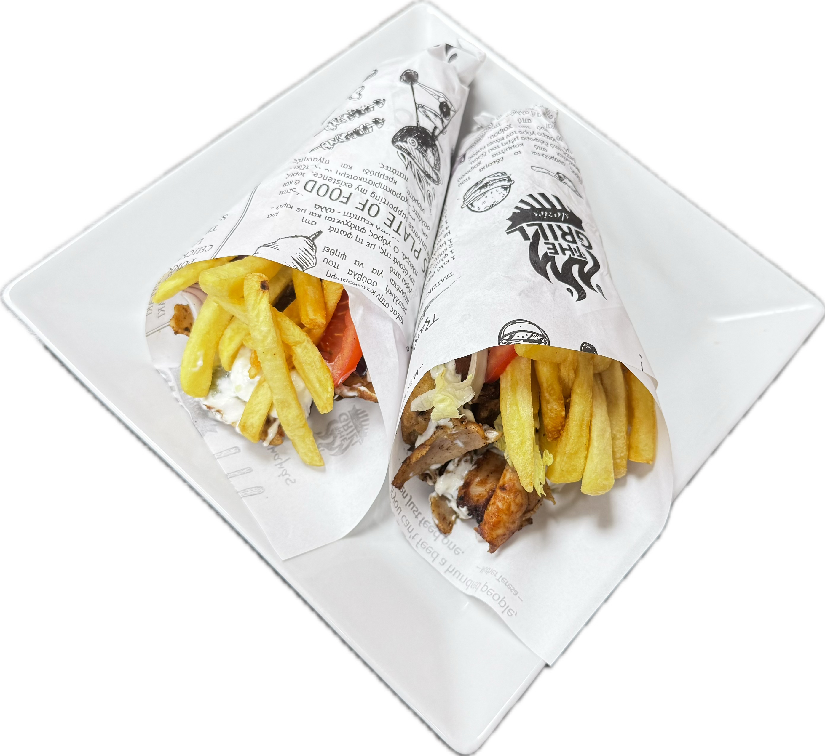 550 SEK2 st grillade kycklingspett, 2 st soutzoukaki, 2 st bifteki, 2 st shish kebab, 1 st lammrack. Serveras med pommes och tzatziki.